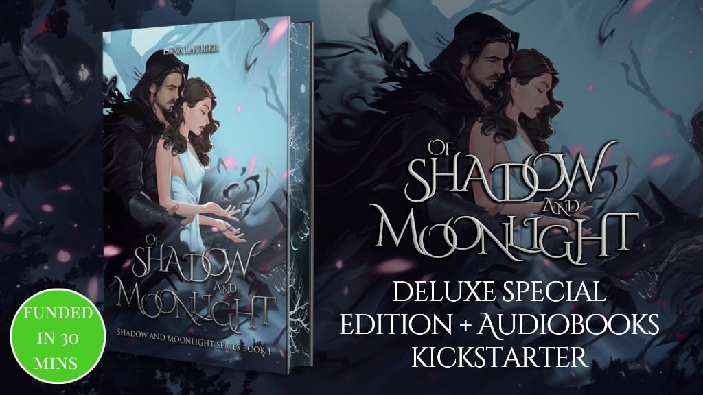 Not only was the Kickstarter funded in the first 30 minutes, but we have gone above and beyond what I ever imagined at 369% funding, and we have unlocked so many additional goodies via stretch goals including full-color illustrated scenes in the deluxe editions and TWO AUDIOBOOKS!!!