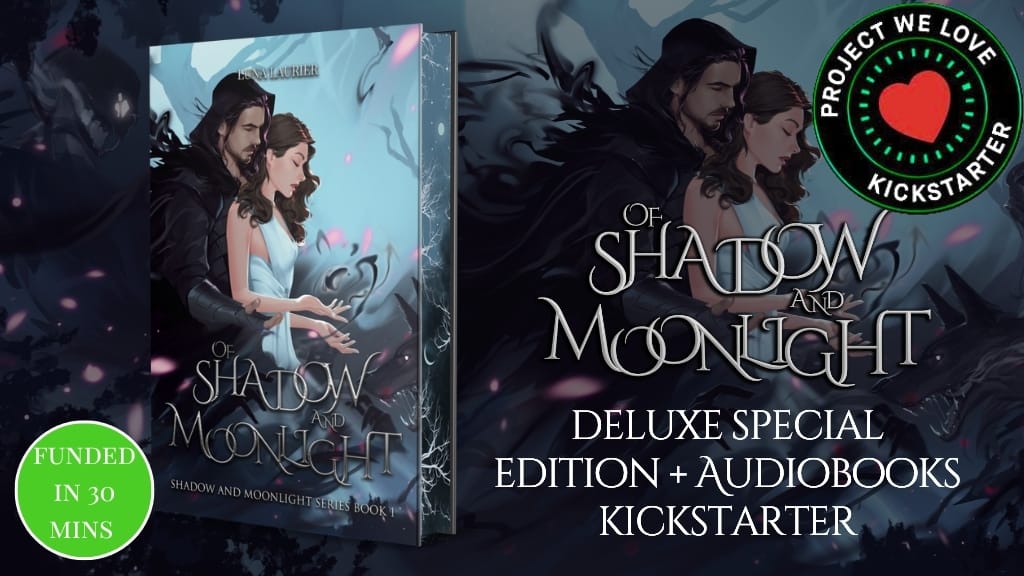All tiers from the $25 E-Book Omnibus and up will be going home with additional art, goodies, and the audiobooks for Of Shadow and Moonlight AND Tipped in Frost and Blood, and we are inching toward the stretch goal where everyone will go home with the audiobook for To Ashes and Dust as well! That’s 3 audiobooks for FREE!!